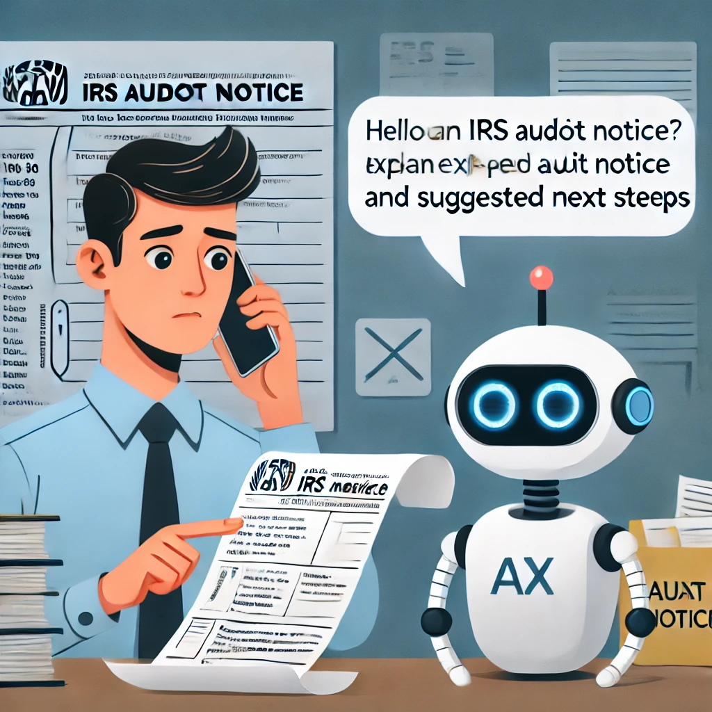 MyAIWiz helps users decode IRS notices and audit requests by explaining what each notice means and suggesting next steps. Users can ask the AI questions like: